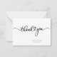 Una manera grandiosa y reflexiva de agradecer a tus amigos, familia y compañeros de trabajo que te honraron su presencia en tu día de boda con estas tarjetas de agradecimiento modernas con letras de guion con "gracias" y un corazón de amor.