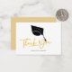 Personaliza fácilmente esta elegante tarjeta de agradecimiento de graduación moderna con tu nombre haciendo clic en el botón "Personalizar". Esta tarjeta presenta una gorra de graduación y una escritura moderna que dice "Gracias" en falso oro que está configurado.