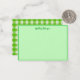 Haz que tus mensajes salgan a la luz con nuestra tarjeta Green Buffalo Plaid - Gingham Check Name Border Note, una nueva y elegante toma de papel clásico. Este diseño vibrante combina el encanto intemporal de las mantas de búfalo con una paleta de colores verde y blanco nítida, perfecta para añadir un toque de modernidad a las notas de una casa de campo. Estas tarjetas de notas personalizadas, hechas con material de gran calidad y de gran calidad, se sienten lujosas y proporcionan una superficie lisa y de alta calidad para la escritura. Son ideales para una variedad de usos, desde enviar notas de agradecimiento personalizadas hasta dar un regalo reflexivo que es tanto moda como personalizado. Actualice su correspondencia y deje una impresión duradera con este diseño de fondo moderno y personalizado que realmente destaca.