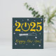 Green square greeting card Happy new year written in yellow in English with many stars - editable text and background