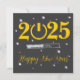 Grey square greeting card Happy new year written in yellow in English with many stars - editable text and background