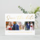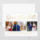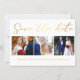 guardar la fecha, caligrafía dorada minimalista, tarjeta de collage de tres fotos del boda