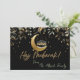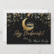 Tarjeta Pequeña Hajj Mubarak con negro con hojas doradas y verdes