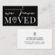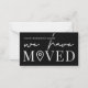 Permita a sus clientes, empleados y proveedores de entrega conocer su nueva dirección de oficina con este minimalista Diseño de tarjetas de visita Hemos trasladado. Con un diseño en blanco y negro con fuentes de moda, espacio para su nombre de negocio y nueva dirección, esta moderna tarjeta de visita es una manera fácil de actualizar a los clientes sobre su cambio de dirección.