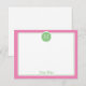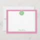 Tarjeta Pequeña Inicial de Monograma Circular Preppy Rosa Verde