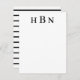 Diseño de tarjeta de nota plana personalizada atemporal y elegante que presenta letras negras que se pueden personalizar con las iniciales del primer, último y segundo nombre en tipo serif clásico. Se incluye espacio para su nota manuscrita y la parte posterior de la tarjeta presenta un patrón atractivo de rayas horizontales negras y blancas.