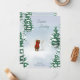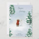Esta encantadora tarjeta de Navidad del bosque presenta un oso acogedor con una bufanda roja construyendo un muñeco de nieve entre los abetos nevados. El saludo de la parte frontal es totalmente personalizable, lo que te permite agregar tu propio mensaje de temporada, mientras que el interior incluye espacio para una nota personal. Una forma cálida y caprichosa de enviar alegría navideña de tu familia a amigos y seres queridos.