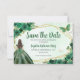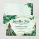 Esmeralda moderna Cazadora Oscura Purpurina de Oro Verde Espuma Rosa Floral Mariposa Princesa Quinceañera Cumpleaños Salven la Fecha Anuncio