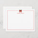 Tarjetas planas de papelería personalizadas elegantes y femeninas para la temporada de Navidad con su nombre en tipografía Sans Serif combinada con elegante estilo festivo rojo en estilo coquette adornado con muérdago y bayas. El mismo lazo está en la parte posterior de la tarjeta.