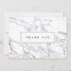 Un fondo de mármol blanco y gris de alto contraste ofrece una estética de lujo en esta carta de agradecimiento minimalista. El diseño de la tarjeta de nota plana está en blanco en el reverso para añadir su propio mensaje. Diseño © 1201AM Design Studio