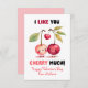 Esta dulce tarjeta de San Valentín para el aula presenta una encantadora ilustración de acuarela de dos cerezas lindas y la frase juguetona "Me gustas mucho, cereza mía" en un fondo blanco ajustable. La tarjeta incluye texto personalizable para "Feliz día de San Valentín" y el nombre del remitente, lo que la hace perfecta para personalizar. La parte posterior muestra un diseño rosa personalizable, lo que añade un toque vibrante y alegre. Ideal para el Día de San Valentín, Galentine's, Día de la Madre o cualquier ocasión para celebrar a alguien especial, esta tarjeta divertida y versátil es ideal tanto para niños como para adultos.