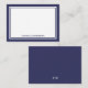 Add a personal touch to your stationery with this clean and modern note card. The front features a white background with a classic double border in navy blue, with your full name placed neatly at the bottom in a timeless serif font. The design stays simple and polished, giving it a versatile look that works for any occasion. The back includes a white initial monogram centered against the solid navy blue background for a sleek, subtle contrast.