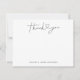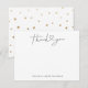 Una tarjeta de agradecimiento boda, simple y discreta, que incluye un texto tipográfico escrito que dice "gracias" con un corazón en el medio. Añade tus nombres en la parte inferior. La parte trasera de la tarjeta tiene puntos falsos de oro.