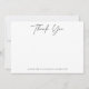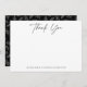 Elegante carta de agradecimiento con "Gracias" escrito a mano en negro. Personalice la parte delantera de las tarjetas botánicas de agradecimiento añadiendo sus nombres o texto personalizado. El papel blanco y negro se invierte para mostrar un hermoso patrón follaje. ¡El personalizado agradece que las tarjetas de notas sean perfectas para bodas, duchas para bebés, graduaciones, cumpleaños y más!
