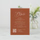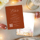 Simple modern script design on Earthy tones of terracotta color, warm and romantic, great details cards with QR code for rustic fall wedding, mountain destination wedding, and boho floral wedding