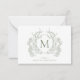 Tarjeta de nota Monograma del Escudo Floral Verde Sage Botánico Clásico