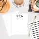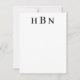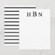 Diseño de tarjeta de nota plana personalizada atemporal y elegante que presenta letras negras que se pueden personalizar con las iniciales del primer, último y segundo nombre en tipo serif clásico. Se incluye espacio para su nota manuscrita y la parte posterior de la tarjeta presenta un patrón atractivo de rayas horizontales negras y blancas.