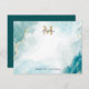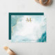 Tarjeta de nota monográfica Ocean Verde azulada Blue Gold Watercolor Splash