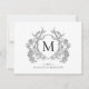Tarjeta Pequeña Monograma del Escudo floral blanco y negro clásico
