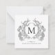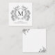 Tarjeta Pequeña Monograma del Escudo floral blanco y negro clásico