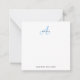 Elegante tarjeta de notas de Monograma con guión azul claro