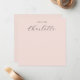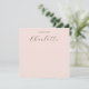 Esta tarjeta de nota muestra su nombre en un guión escrito a mano caligrafía "nota de" en un fondo rosa rubor.