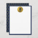 Tarjeta Pequeña Monograma inicial del patrón de hexágono azul y or