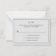 Pequeña tarjeta RSVP simple y boda con un diseño moderno y elegante con su monograma de dos letras en la parte superior y sus detalles rodeados de un borde delgado. Todos los elementos de diseño están en negro sobre un fondo gris claro. Las fuentes y los colores de fondo pueden cambiarse a los colores que desee en la herramienta de edición de diseño. Una moda y un diseño de diseño, ideal para una pareja minimalista.