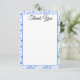 This impressive flat note card features a thin blue border, cobalt blue tropical flowers pattern frame and elegant script 'Thank You'. A large cobalt blue protea flower and modern name are featured on the reverse side. Easily change text and name using the template provided. Tie with a pretty bow or twine and a set of these flat cards is ideal for a gift. Made and Printed in the USA.