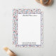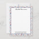 Stylish personal name in script, "Happy Birthday America! 250 years" in a vintage typewriter font and framed with a cute pattern border are featured on this whimsical flat note card. The reverse side is a matching solid pattern with red and blue 4th of July festive motifs. Easily change name and text using the Template provided. Tie with a bow or twine and this set of 10 cards makes a thoughtful gift. Made and Printed in the USA.