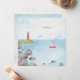 Geboortekaartje (13,3 x 13,3 cm) - Nautisch Geboortekaartje Met De Zee, Een Vuurtoren En Een Zeilboot.