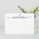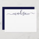 Admire la modernidad y la sofisticación con nuestra moderna tarjeta de escritura con el nombre de la tipografía azul de la Marina. Esta tarjeta presenta un elegante matiz azul marino y una tipografía de escritura personalizada, ofreciendo un lienzo contemporáneo para sus mensajes. Ideal para expresar sentimientos o enviar notas elegantes, añadiendo un toque de elegancia a tu correspondencia.