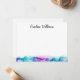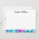 Tarjetas de nota con un borde de color morado y azul acuático en la parte inferior y tu nombre en la parte superior en un elegante tipo de letra de guión.