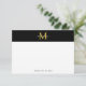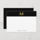 Elegante carta de notas con monograma personalizado con nombre en oro y blanco sobre fondo negro.