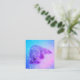 Pequeño cachorro lindo en azul y púrpura, nevada cayendo. Personalizar tu texto en la parte posterior.