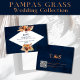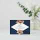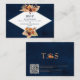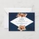 Impresionante y moderno código QR tarjeta RSVP con elementos florales de hierba boho pampas en terracota, rústicos tonos de cabaña de otoño, con un fondo azul marino. Agregue la dirección URL de su sitio web de bodas al reverso de la tarjeta y el código QR se actualizará, o elimine si no es necesario. Haga clic en personalizar/personalizar más para incluir sus propios detalles. Los huéspedes pueden escanear el código QR para acceder a una gran cantidad de información sobre los detalles de su boda, las actualizaciones, etc.