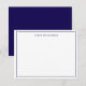 Tarjeta de nota plana personalizada en azul marino oscuro y blanco. Incluye nombre, borde y parte posterior azul sólido.