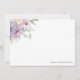 Tarjetas de notas personalizadas bonitas con flores de acuarela en púrpura y lila, con hojas verdes. Personalice con su nombre. Es un regalo excelente.