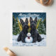 Envíe sus cálidos deseos de vacaciones con esta encantadora tarjeta de Navidades de Scottish Terrier que incluye dos adorables Territorios Escoceses sentados orgullosamente al lado de un animado muñeco de nieve en un maravilloso país invernal. Detrás de los territorios escoceses, el sol se pone detrás de árboles cubiertos de nieve y un resplandor dorado llena el cielo, creando un ambiente tranquilo y festivo. Con copos de nieve que caen suavemente, esta tarjeta de Navidades de Scottish Terrier es perfecta para los amantes de Scottish Terrier o para cualquiera que disfrute de la magia de la temporada. Comparte la alegría de los Navidades con esta reconfortante tarjeta de Navidades de Scottish Terrier, perfecta para extender la alegría de las vacaciones a amigos y familiares. contenido generativo