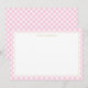 En la parte delantera, las tarjetas de notas personalizadas de moda tienen un contorno de ingham rosa grueso y un borde dorado delgado y en la parte posterior un patrón de gingham rosa.