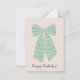 Tarjeta Pequeña Personalizable Gingham Coquette Bow Rubor Cumpleañ