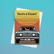 Tarjeta Pequeña Personalización del coche clásico conduciendo haci