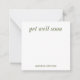 Personalized stationery enclosure notecard with a green gingham pattern in notes of deep forest sage olive garden green with the sentimental words "get well soon". Tuck it into a flower bouquet or meaningful gift. These minimal flower shop inspired enclosure cards bring a retro kitchen vibe to your most thoughtful moments.