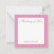Personalized stationery enclosure notecard with a green gingham pattern in notes of dark deep and vibrant rose pink and bubble gum pink with the sentimental words "Thinking of You". Tuck it into a flower bouquet or meaningful gift. These minimal flower shop inspired enclosure cards bring a retro kitchen vibe to your most thoughtful moments.