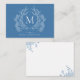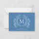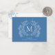 Tarjeta Pequeña Polvo ventilado Escudo floral azul francés Monogra