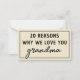 Tarjeta de nota Razones por las que te amamos abuela Bonito !