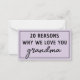 Tarjeta de nota Razones por las que te amamos abuela Bonito !
