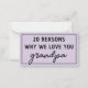Tarjeta Pequeña Razones por las que te amamos abuelo lindo