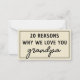 Tarjeta Pequeña Razones por las que te amamos abuelo lindo