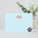 Retro 80s video game 8 bit pixel art dog paw print. Blue background. Personalized note cards with monogram. Edit initial and name to customize.
